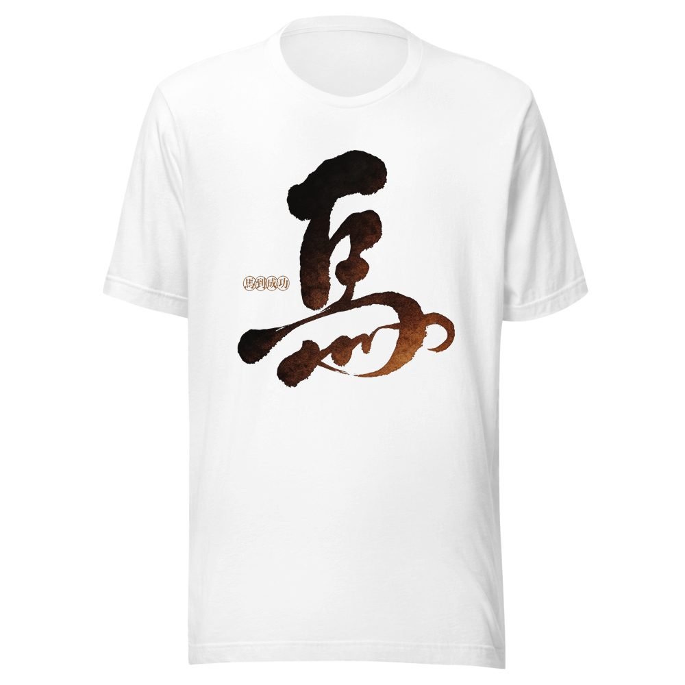 The Chinese horse calligraphy vintage character flows across this premium tee with museum-quality detail, featuring authentic brush fiber marks and ink bleeds that mirror traditional rice paper artistry. Rich gradients transition from midnight charcoal at the stroke origins to warm sepia tones, while subtle ornate flourishes honor classical Chinese typography traditions with sophisticated depth and scholarly elegance.