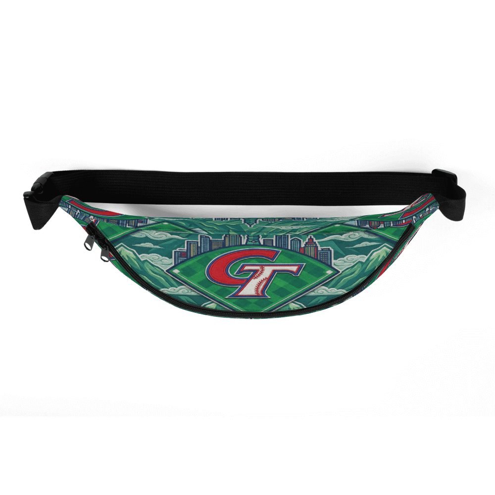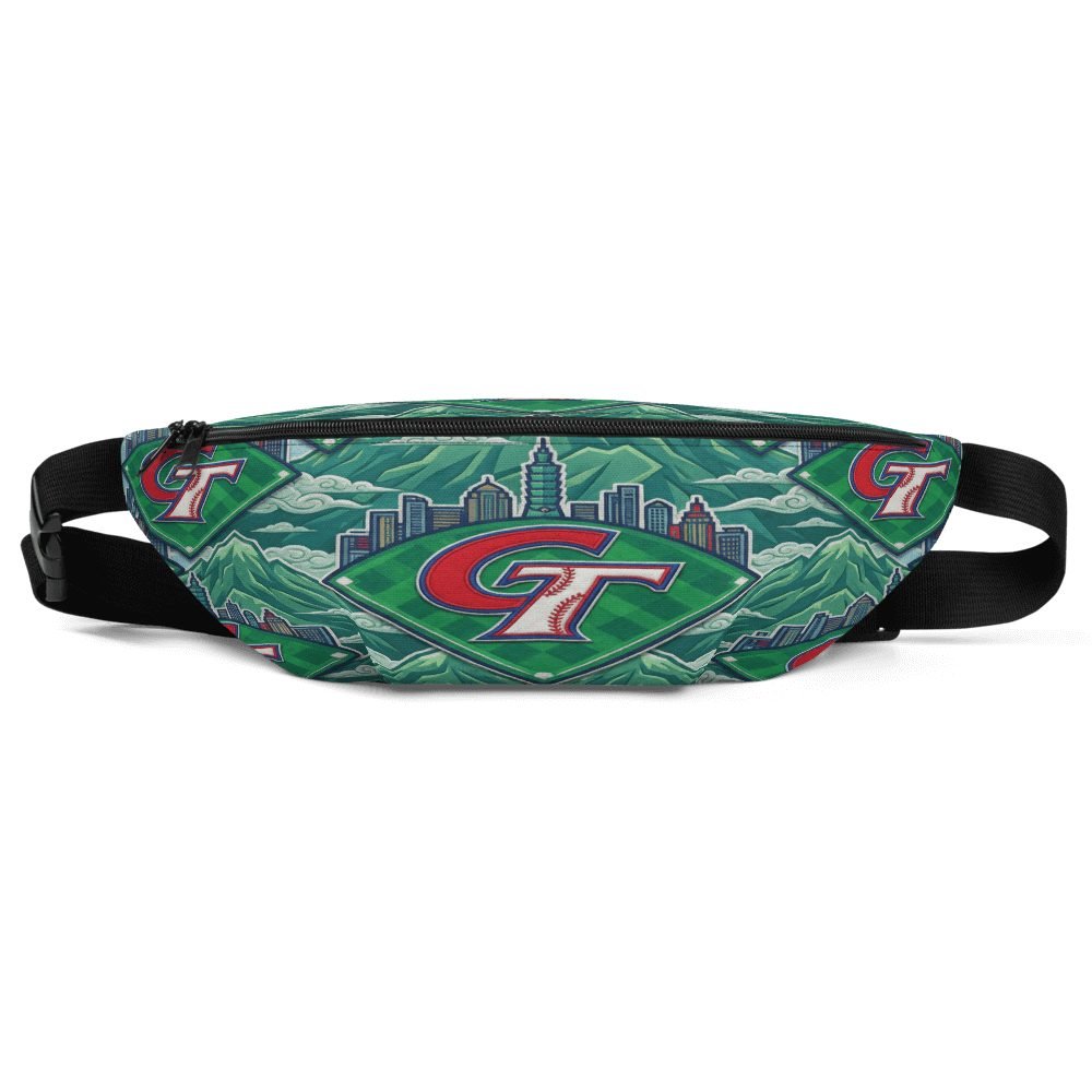Wear your Taiwanese baseball pride with this stunning Chinese Taipei baseball logo fanny pack featuring the iconic CT emblem against emerald diamond grass, Taipei skyline, and majestic Jade Mountain. Every intricate detail celebrates Taiwan’s baseball legacy in vibrant MLB-style artwork.