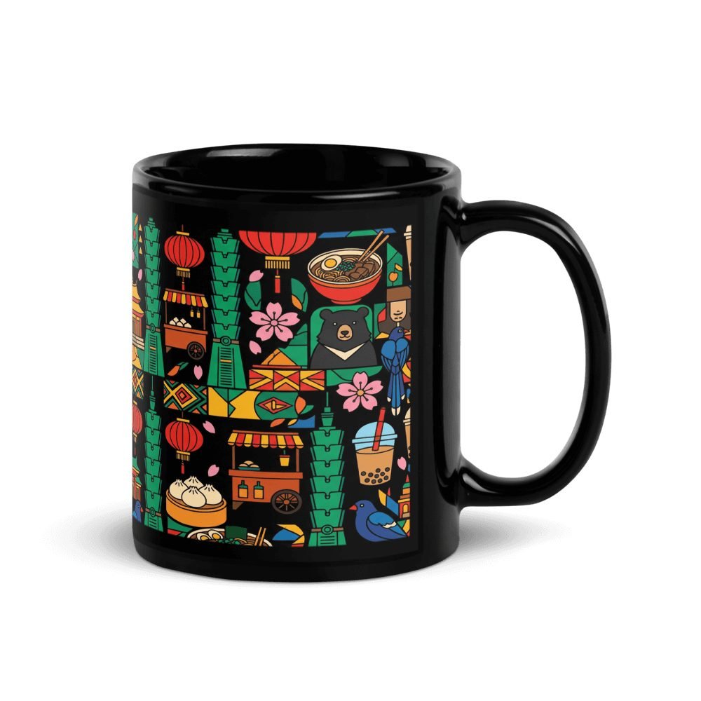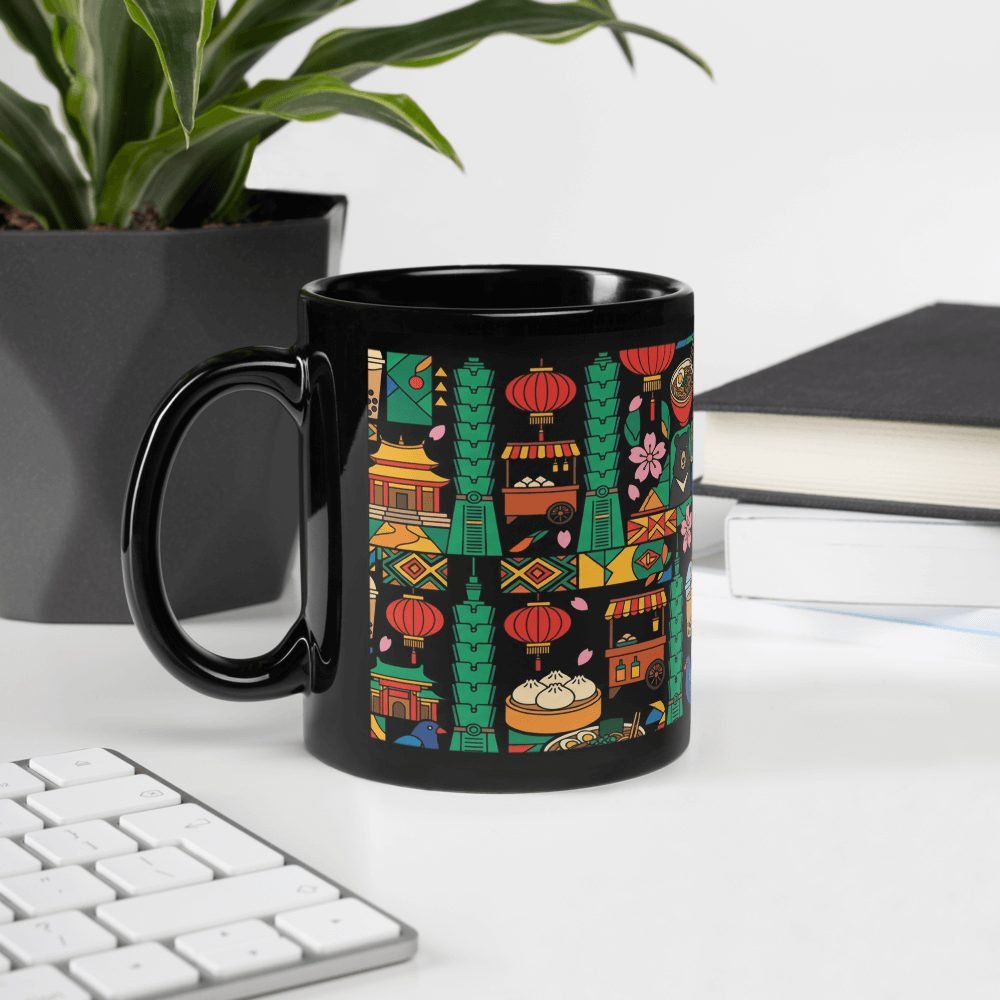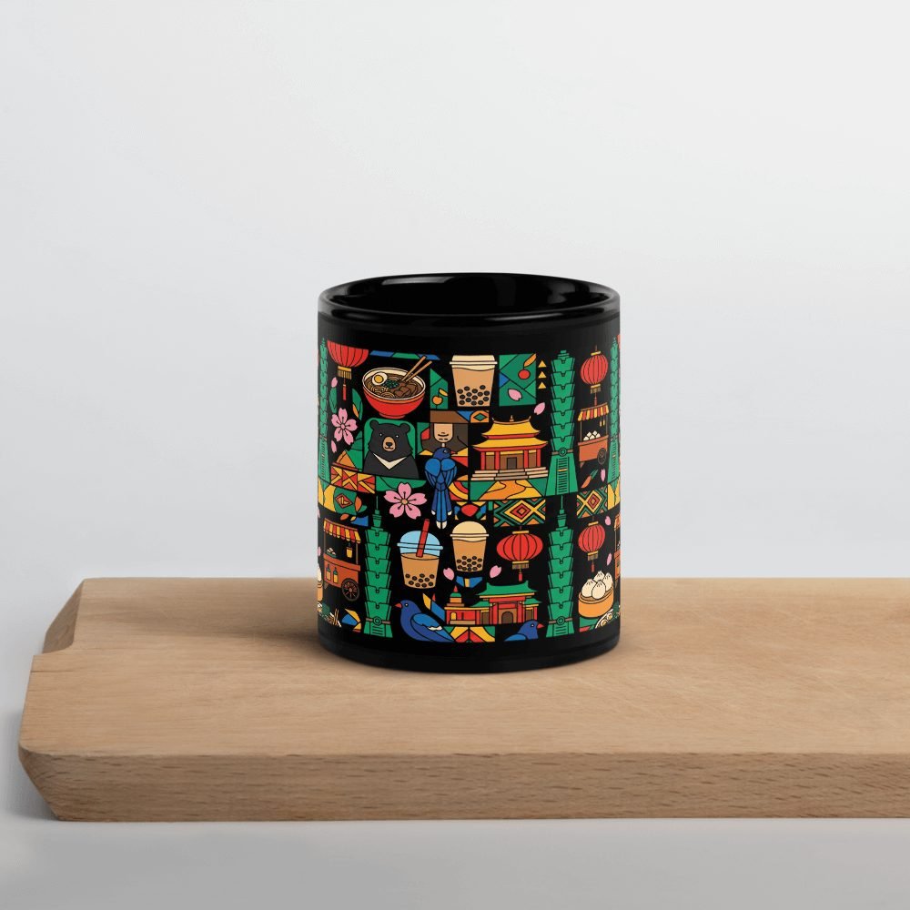 Taiwan Cultural Mosaic Pattern Black Glossy Mug – Island Icons