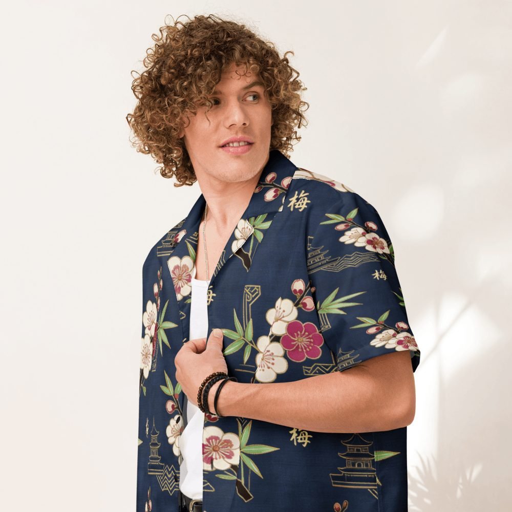 Taiwan Formosa Plum Blossoms Hawaiian Shirt – Vintage Navy