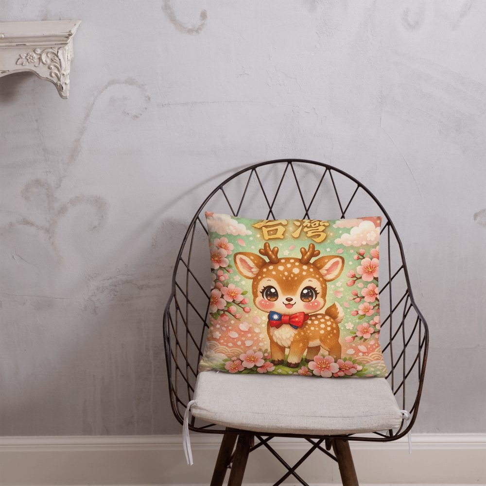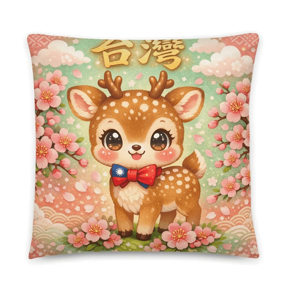 Transform your space into a kawaii wonderland with this adorable Taiwan Formosa sika deer pillow, featuring sparkling eyes, cherry blossoms, and traditional calligraphy. The perfect blend of Taiwanese heritage and Japanese cute culture that makes every room feel like a dreamy sanctuary.