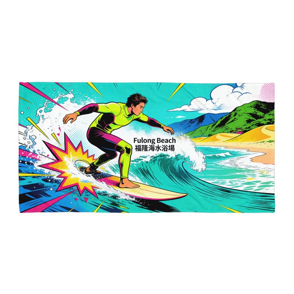 Transform your beach days with this explosive pop art celebration of Taiwan’s legendary Fulong Beach surf scene. Bold Roy Lichtenstein-inspired aesthetics meet authentic surf culture in a design that screams vintage cool and coastal pride.