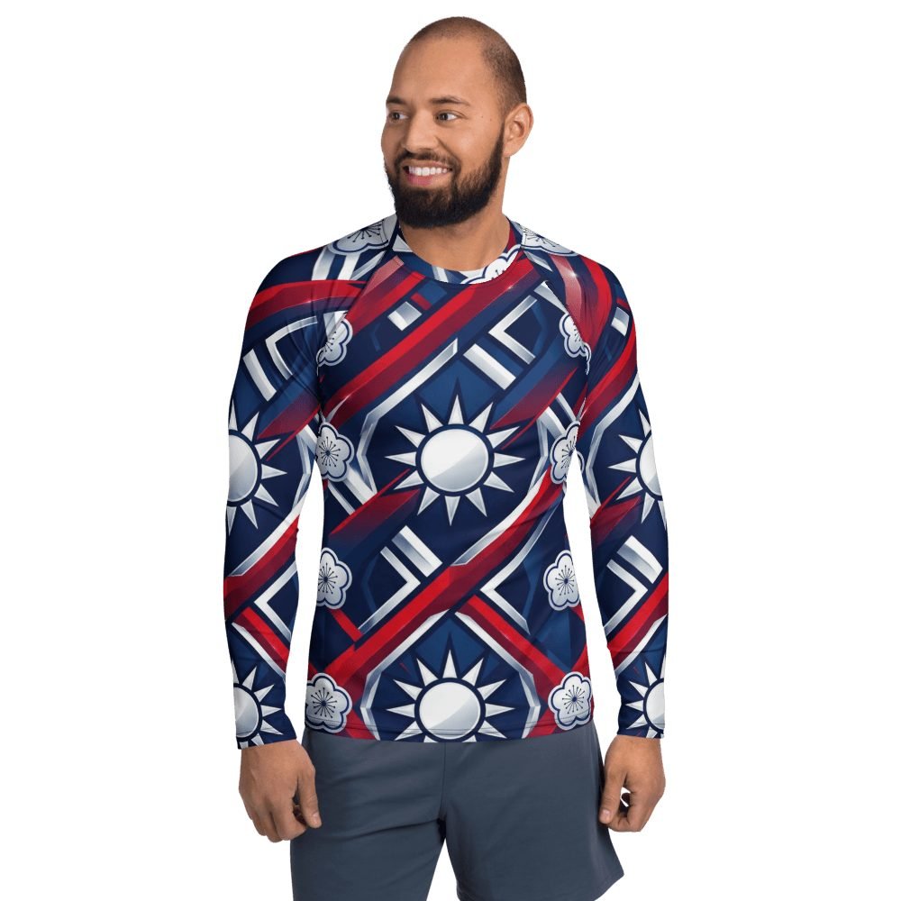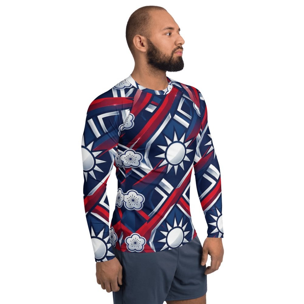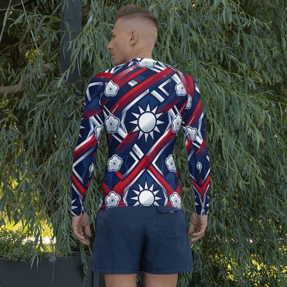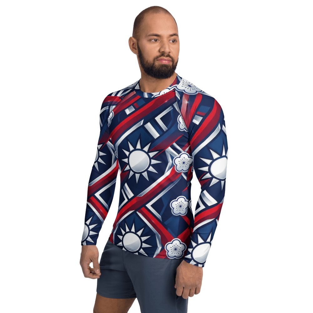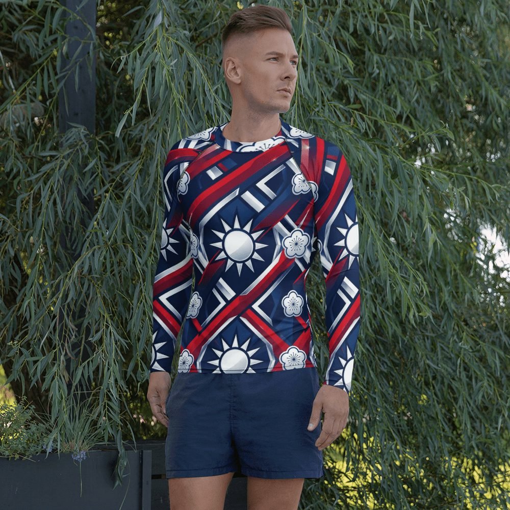 Electrify your water adventures with this stunning Taiwan flag design geometric rash guard that transforms national pride into athletic art. The dynamic twelve-pointed sun radiates across premium athletic fabric in bold red, white, and blue gradients that catch light like chrome, making every swim, surf, or beach day a statement of heritage and style.